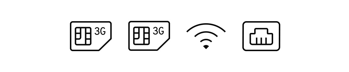 Canali di comunicazione – Ethernet. Wi-Fi 2.4 GHz (802.11 b/g/n). 2 Schede SIM 2G/3G.