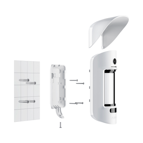 Rilevatore di movimento wireless da esterno con fotocamera per la verifica degli allarmi. Supporta le funzioni di Foto per allarme e Foto su richiesta Invio fino a 5 immagini per ogni rilevamento Illuminazione IR a infrarossi per scattare foto al buio. Doppio PIR / Rilevazione da 3 mt a 15 mt. Anti-mascheramento. Immune agli animali domestici. Uso esterno IP55